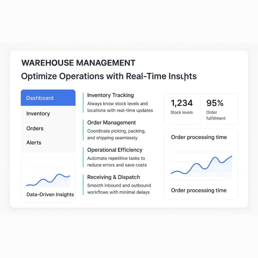 Streamline your warehouse operations to improve efficiency and reduce costs. Our system enables real-time inventory tracking and seamless order management, covering everything from picking and packing to shipping and receiving.